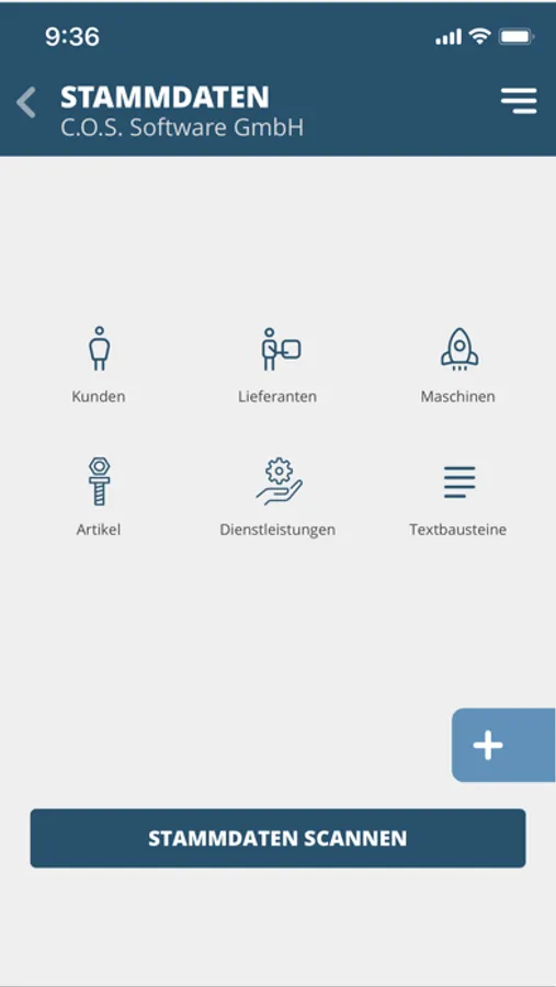 - Scannen: Erfassung von Artikel, Maschinen etc. mit der Smartphone-Kamera. Der Scan eines Barcodes oder QR-Codes führt direkt zum gescannten Objekt
