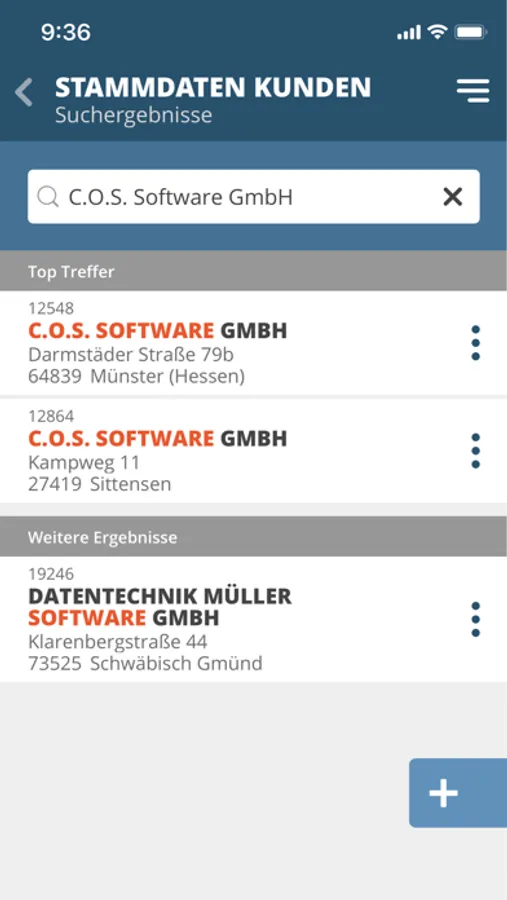 - Intuitive Suchfunktion: Stammdaten, Vorgänge etc. können textlich oder per Scan gesucht werden
