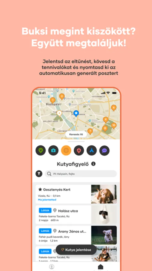 * A statisztikák szerint 3-ból egy kutya élete során egyszer eltűnik. 80%-uk soha nem is kerül elő. A Wuff app egy új, hatékony eszközt ad a kutyabarát közösség kezébe, hogy az elveszett állat hazataláljon. Jelentsd eltűnt kutyádat, nyomtasd ki az automatikusan generált posztert és oszd meg az ismert közösségi hálózatokon. Segíts másoknak, építsünk egy támogató közösséget: jelentsd az appban, ha elkóborolt állatot látsz.