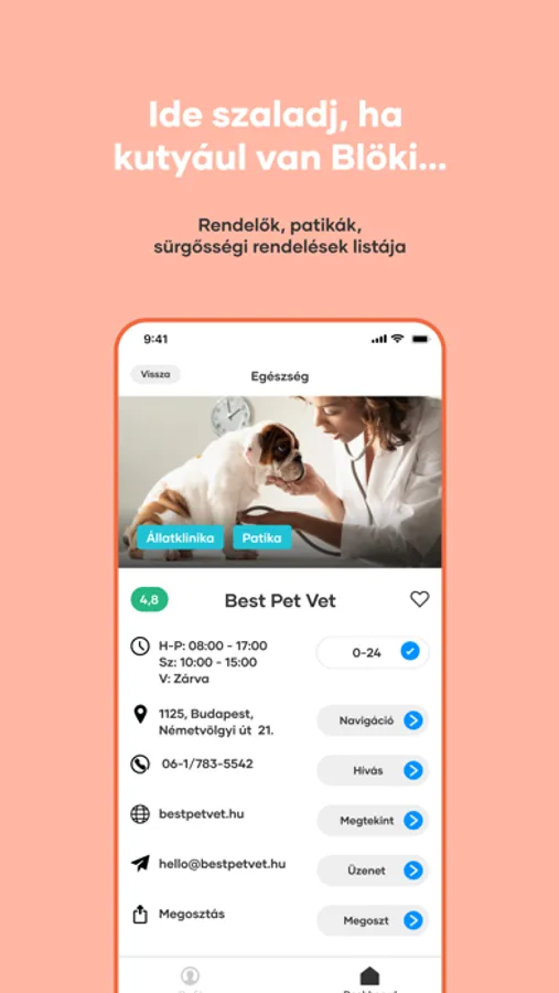 * Találd meg könnyen a legközelebbi állatorvost, patikát vagy ügyeletet. A digitális kórlap funkció segítségével többé nem kell keresgélned a jegyzeteidet kedvenced állatorvosi vizitjeiről.