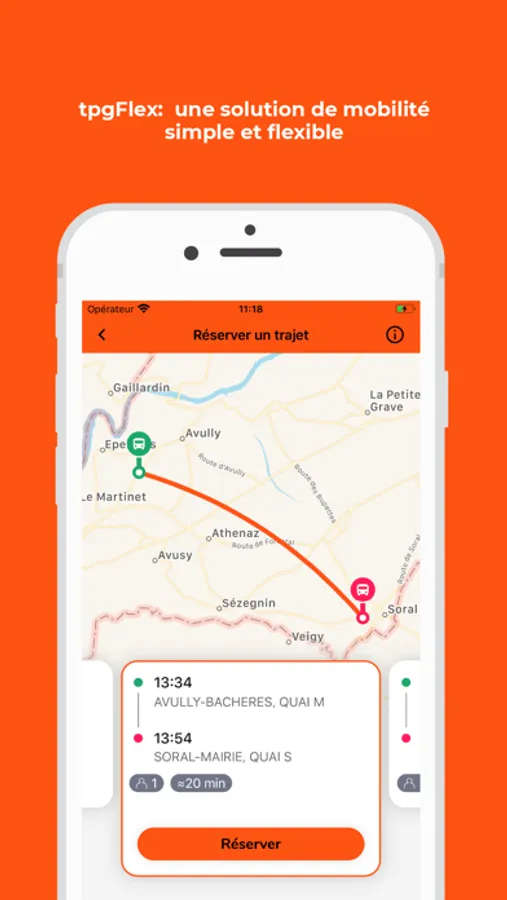 L'application tpgFlex vous permet de réserver votre bus à la demande en choisissant votre arrêt de départ et d'arrivée , l'heure à laquelle vous souhaitez partir ou arriver et vous permet même de commander une course jusqu'à une semaine à l'avance.
