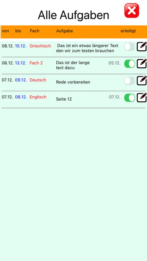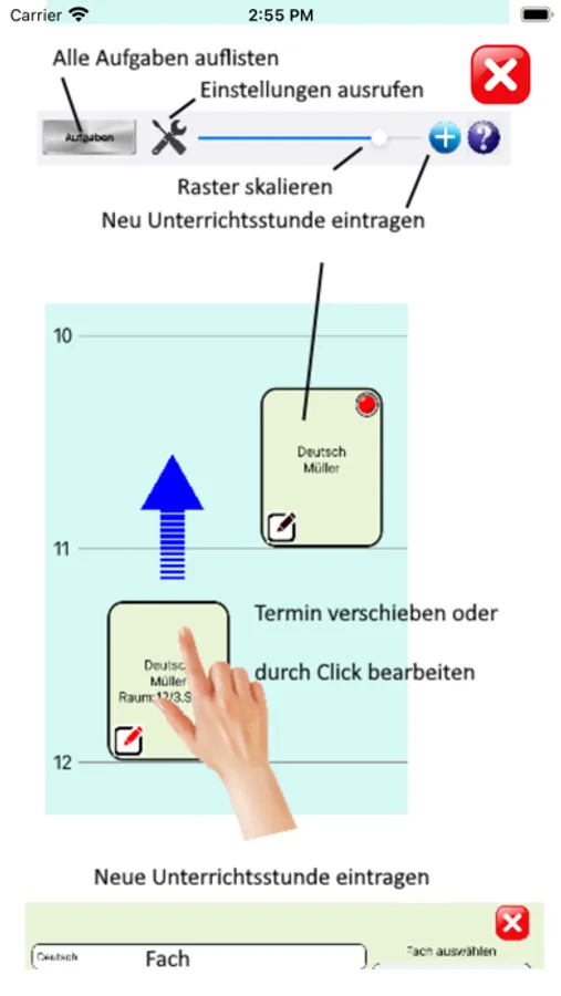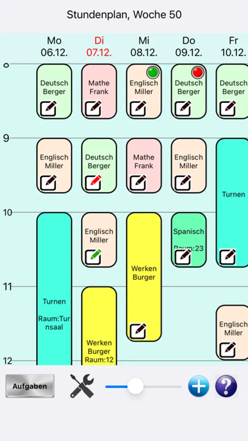 Für jede Stunde kann auch eine Aufgabe inklusive Erledigungstermin und Aufgabenbeschreibung eingetragen werden.