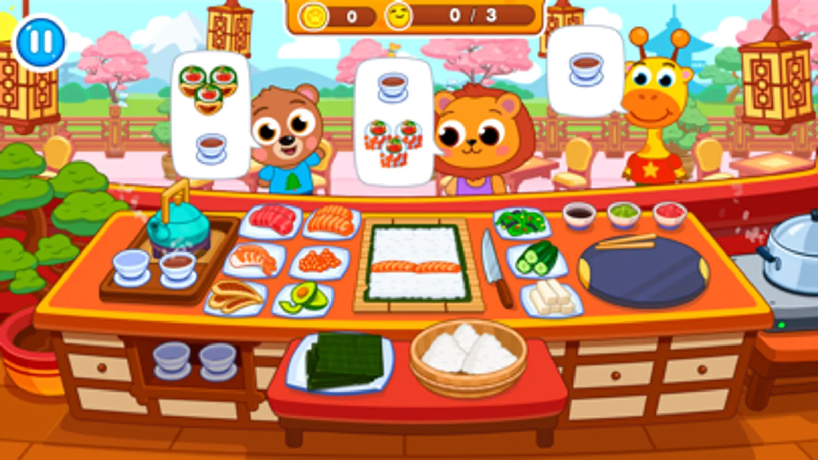 We all like tasty food, especially sweets. And when we come to cafe or restaurant we barely refuse cakes or chocolate. Nowadays healthy food gets more and more popular. Talking about it we can't help but remind Asian meals. And if you like Japanese food and you are fond of cooking plays then this game is for you! Here you playing a role of a real master chef manage a restaurant where the best sushi and rolls are made. We are pleased to present you our new game from the series of educational games for children: Sushi bar.