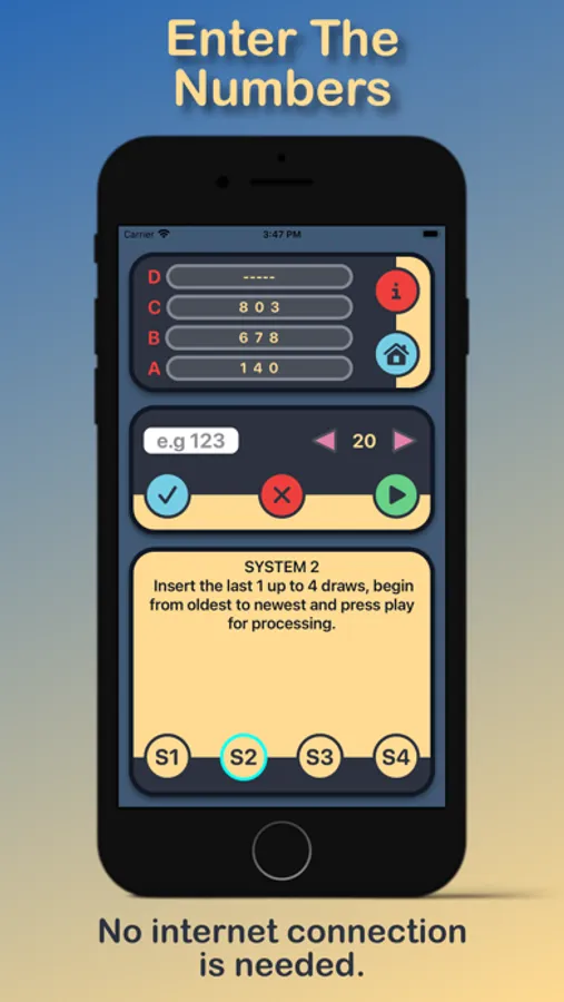 Run tests with old winning numbers from Pick 3 Pick 4 Cash 3 Cash 4 before playing with real money, I don't guarantee that everyone will win. This app just helps to pick some numbers rather picking
