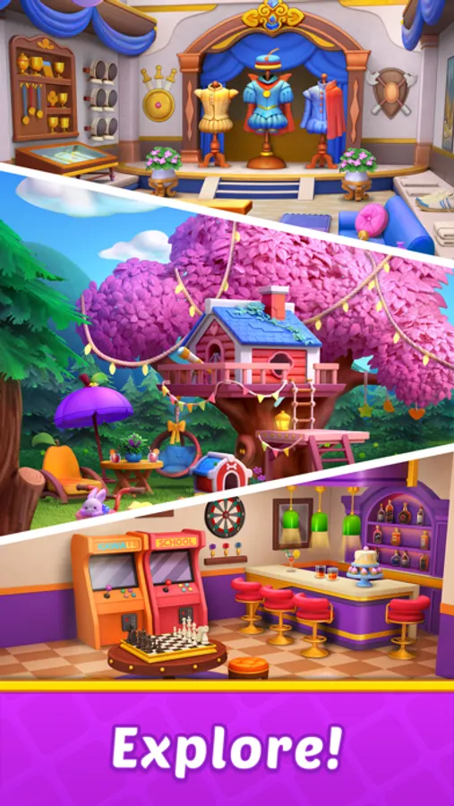 Match 3 and more fruits to create explosive combos and beat levels! Renovate and decorate rooms in the home, receive rewards for completing rooms and discover more hidden areas! Why not take a break, and dive into a relaxing world of home design?