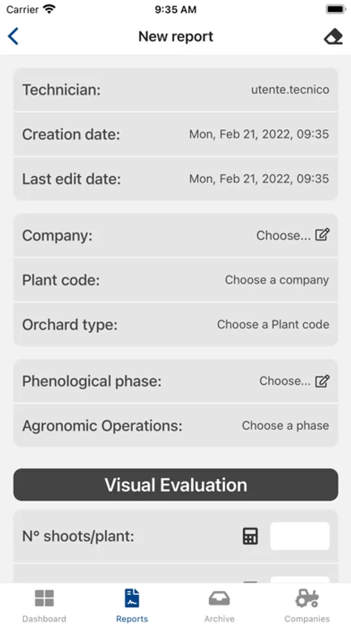 Using this app it is possible to create, manage and send evaluation reports directly to the "Roots" system