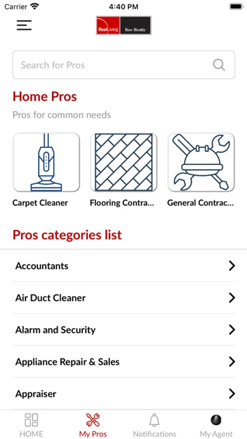 The Real Living Kee Connect App allows all Real Living Kee clients to find the top rated home pros like cleaners, painters etc. recommended by your Real Living Kee Connect agent. You can also get timely reminders for your home such as changing your filter or checking your HVAC unit so that you don't have to remember those minute details to manage your home. Finally you can also get real time messages from your agent on all things happening in your neighborhood.
