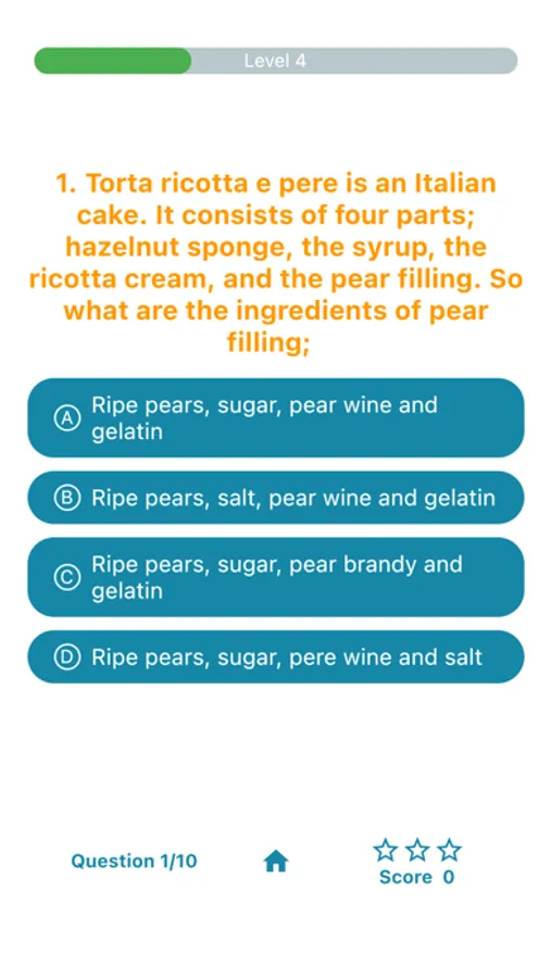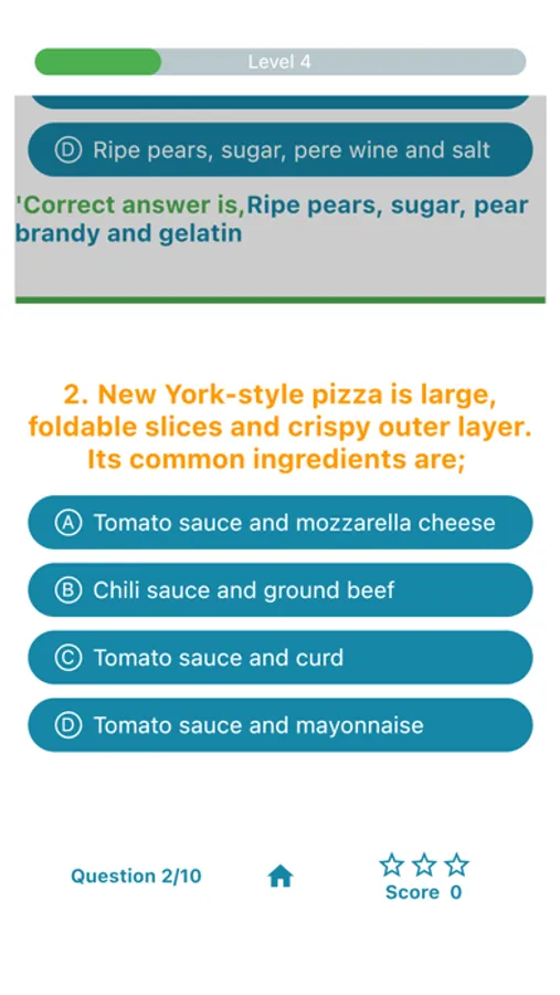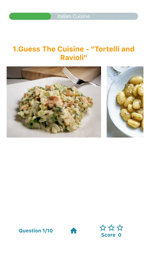 - Multiple-choice quizzes on various cuisines, including Italian, French, Chinese, and more.