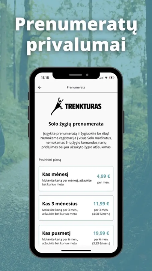 „TrenkTuras“ mob. programėlė skirta žygiavimui Solo žygių maršrutais. Prisijungę prie asmeninės paskyros galėsite užsiregistruoti į žygį, atsisiųsti Solo žygio maršruto žemėlapį, kuris žygio metu veiks ir be interneto. Taip pat matysite savo asmeninę statistiką, įveiktus bei artėjančius žygius. Prenumeratoriai į visus žygius galės registruotis nemokamai, o taip pat galės atšaukti registraciją bei nemokamai pridėti iki 5-ių žygio draugų!