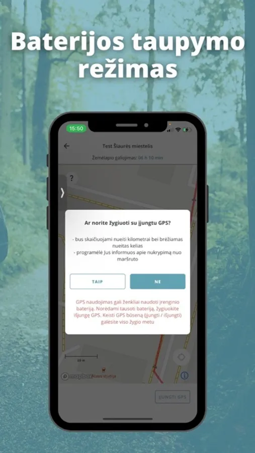 3. Du žygiavimo režimai: su GPS bei be GPS (baterijos taupymo režimas);