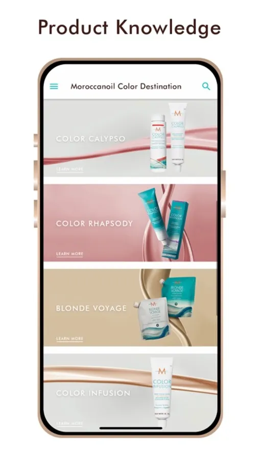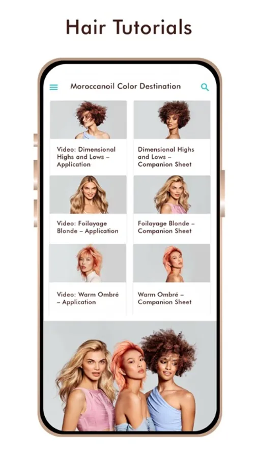 The app features both quick PDF reference guides and short videos. The Moroccanoil Color Destination App includes in-depth color theory, usage instructions and detailed information on Moroccanoil Professional Haircolor products and technology, service guides, and technique videos. A community platform—a forum for open discussion with opportunities to “ask the experts”—is included.