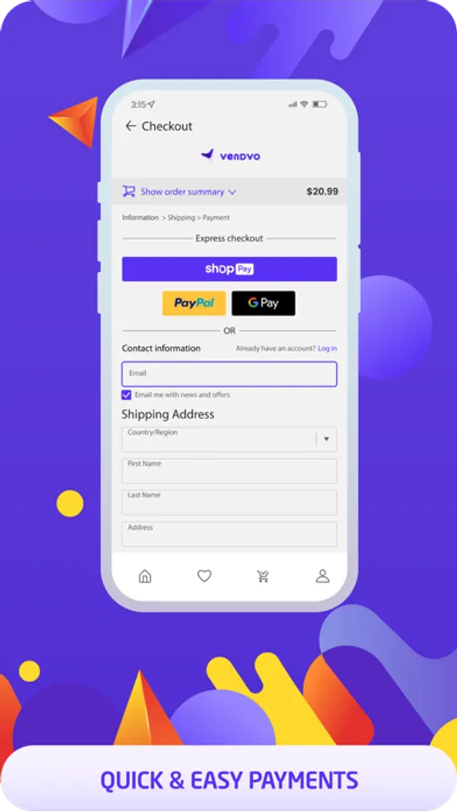 Shop with ease on the VENDVO App - your one-stop destination for a seamless and enjoyable shopping experience. Discover a wide range of top-brand products at your fingertips, from everyday essentials to the latest must-haves. With new items added frequently, you'll never run out of exciting options to choose from. Upgrade your shopping game with VENDVO App today!