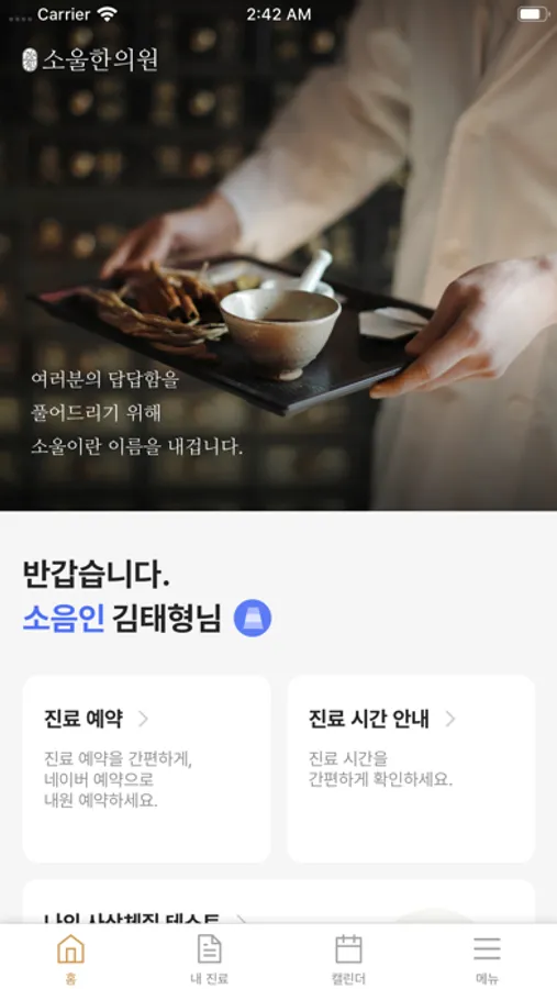 소울 한의원 내원 후 본인의 첩약 진료내역과 프로그램에 대해 알아보세요