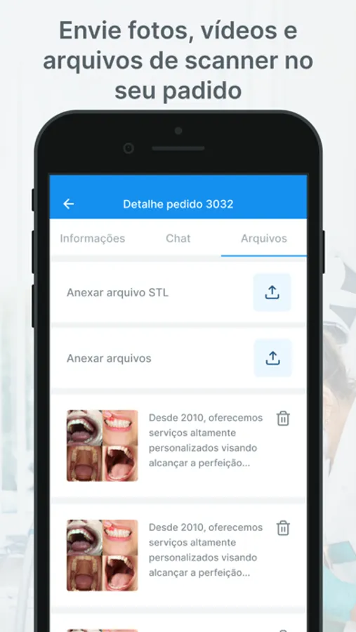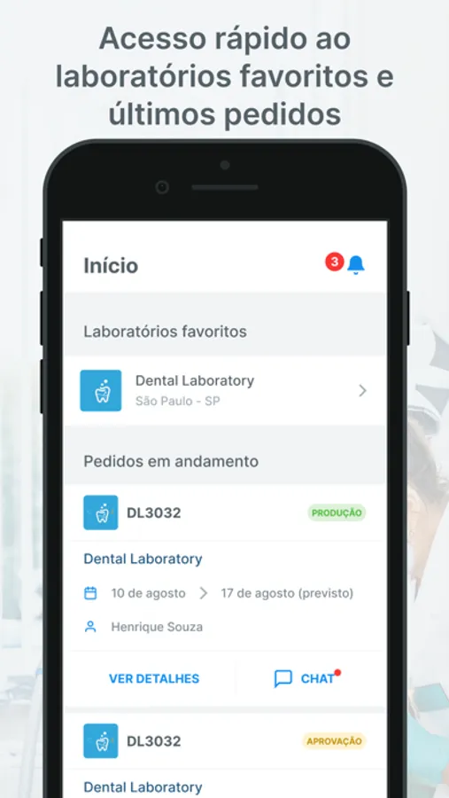 Com o Kiwid Clinic tenha o gerenciamento dos seus trabalhos com os laboratório facilitado, faça o seu pedido direto do celular, acompanhe o andamento da produção, converse pelo chat para tirar dúvidas do seu pedido, controle as faturas e faça o pagamento direto pelo aplicativo.