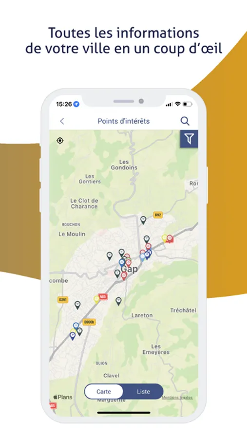 L'application de la ville de Gap vous propose les actualités, l'agenda des manifestations, des notifications en temps réels et bien plus encore :