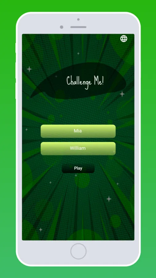 A challenge game that you can play with your friends, you can play this game with your friend, couple or family and find out who is more courageous. First, write your name and your opponent's name on the labels and tap the "play" button. Then he should press the "Challenge me" button whichever player the sign is pointing at. Then the other player must perform the task that is randomly assigned to him. The first player to reach 3 points wins.