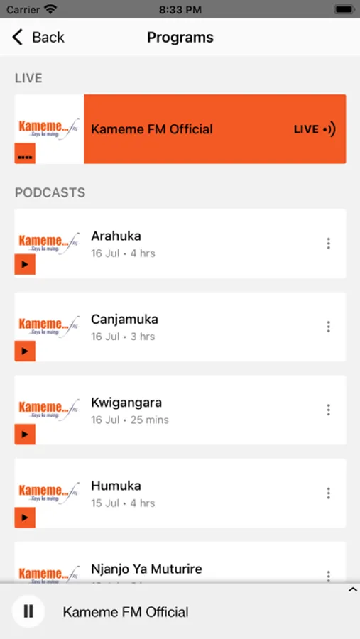 - Catch up or listen again to your favorite Kameme Fm 101.1 Radio programmes