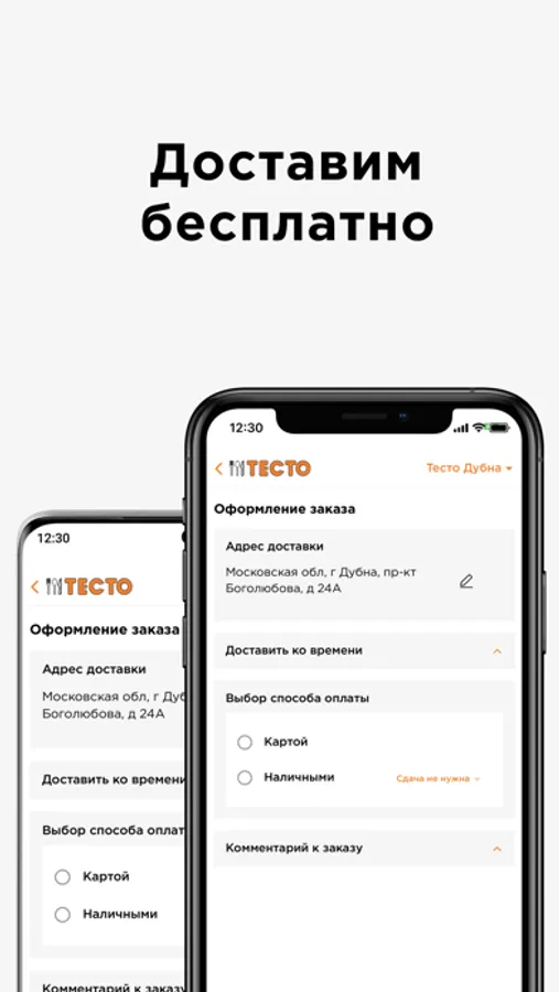 Доставляем быстро и бесплатно. Через пуш-уведомление сообщаем, когда приедет курьер.
