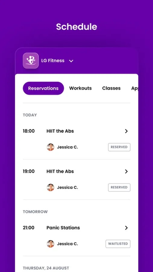 For members of LG Fitness to reserve their place in a class, sign up for gym events, and general account management like updating headshots and credit card on file.