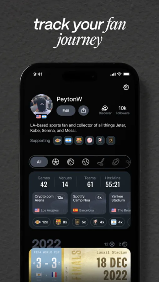 Your profile is a billboard for your fandom, including personal stat tracking for football (soccer), the NBA, and MLB, with the NFL and NHL coming soon, and more sports, leagues, and competitions on the way.