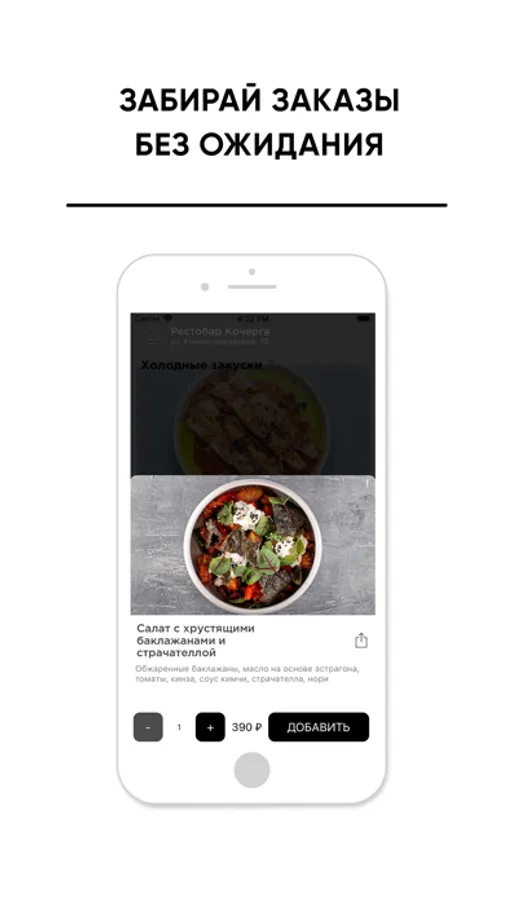 Заказывайте в нашем приложении доставку или оформляйте самовывоз. Просто укажите время готовности и забирайте свой заказ без ожидания!