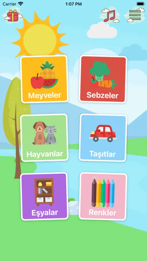 6 kategoride 100 den fazla kelime öğretebilirsiniz.