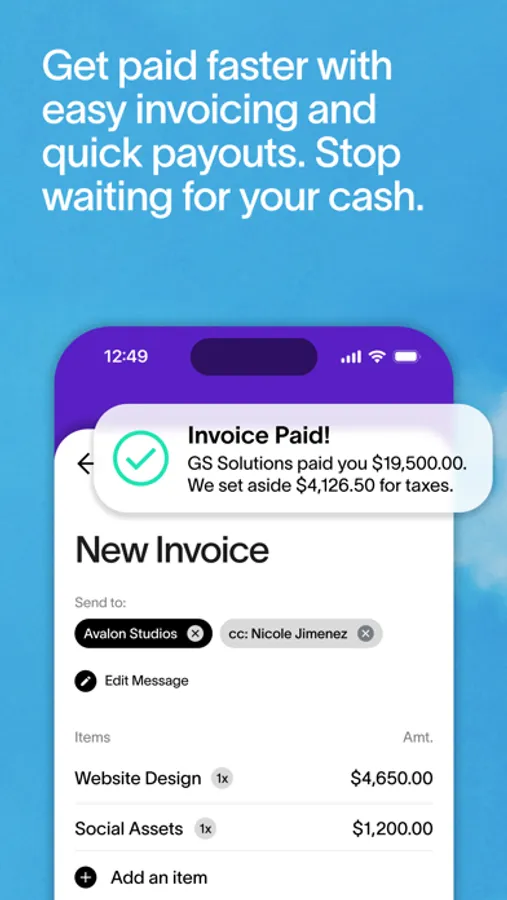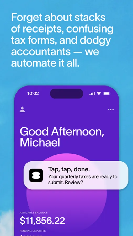 Automatically set aside what you owe for state and federal income taxes. When it's time to file, we handle it all for you in-app—no accountant necessary.
