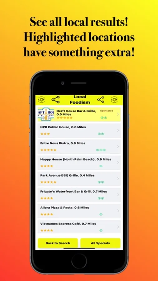 If a sponsored restaurant falls within your search criteria, you’ll be able to check out their daily specials along with any special occasion deals they might also be offering. We also have a section to show you all of the sponsoring restaurants around you just in case you want to take a look at other cuisine types.