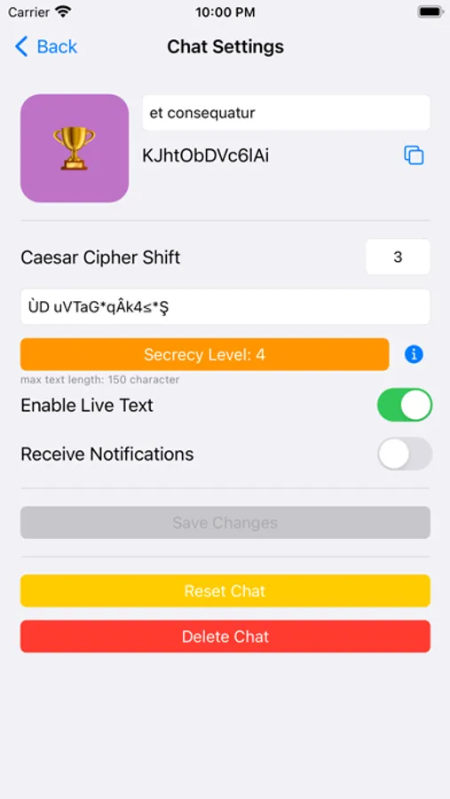 - If the decryption game is not fun for you, you can also use these levels for sending a secure message. The thing to remember is that when you make a change in the chat settings, it will not be transferred to the other device. It is only kept on your device. If you have changed the secrecy level, keyword, or live text settings and you only want to securely message your friend, they must also make these changes on their own device.