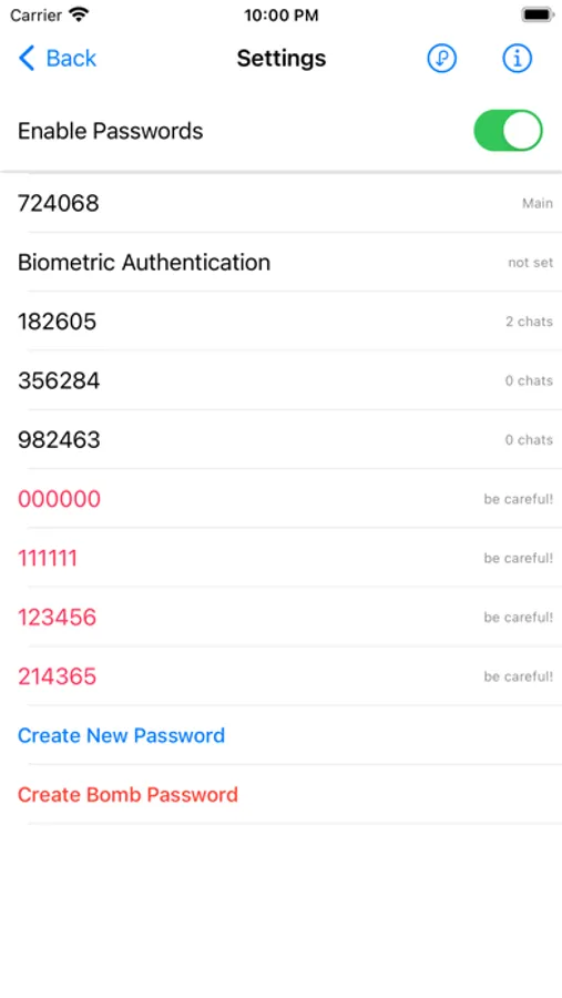 If you do not want anyone to see the messages in your application, you can activate the login password. This password is asked every time you enter the application. As an extra, you can create fake passwords and make sure that only the chats you want appear with these passwords.
