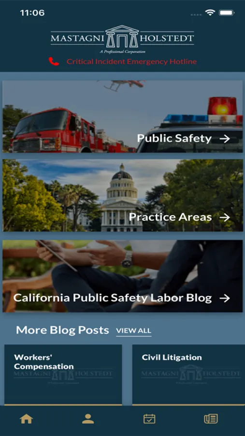 Whether you are a public safety professional, private or public sector employee, an individual injured in an accident, or you are looking to seek legal advice from a lawyer, this free law firm app can help you find a lawyer or learn more about Mastagni Law Firm on your phone or any mobile device.