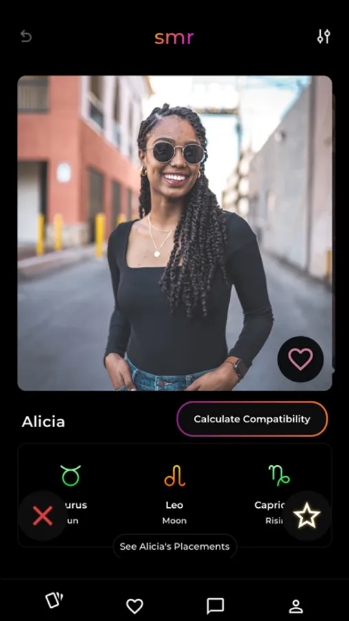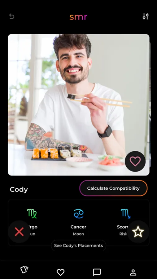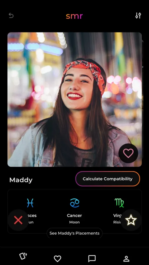 Within the app, you'll find a beautifully crafted interface that immerses you in the mystical world of astrology. Enjoy a seamless and intuitive user experience as you navigate through personalized profiles, discover potential matches, and engage in meaningful conversations. Each profile showcases an individual's astrological information, including their sun, moon, and rising signs, allowing you to gain deep insights into their character, values, and emotional tendencies.