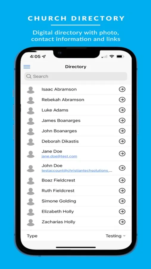 iServe Mobile allows you to connect to your church's iServe solution from your phone or tablet. You can view the directory, view announcements, see and submit prayer requests and much more! Contact us to see how you can get iServe for you congregation!