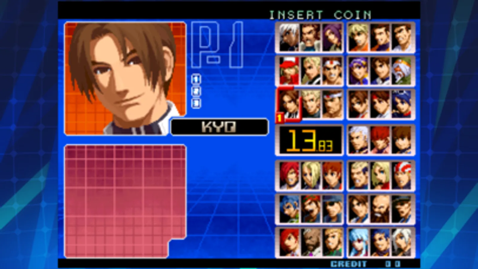 The 9th entry in the KOF series. In this tame, the Striker System is replaced by creating teams for the comeback of the 3-on-3 Battle Mode.