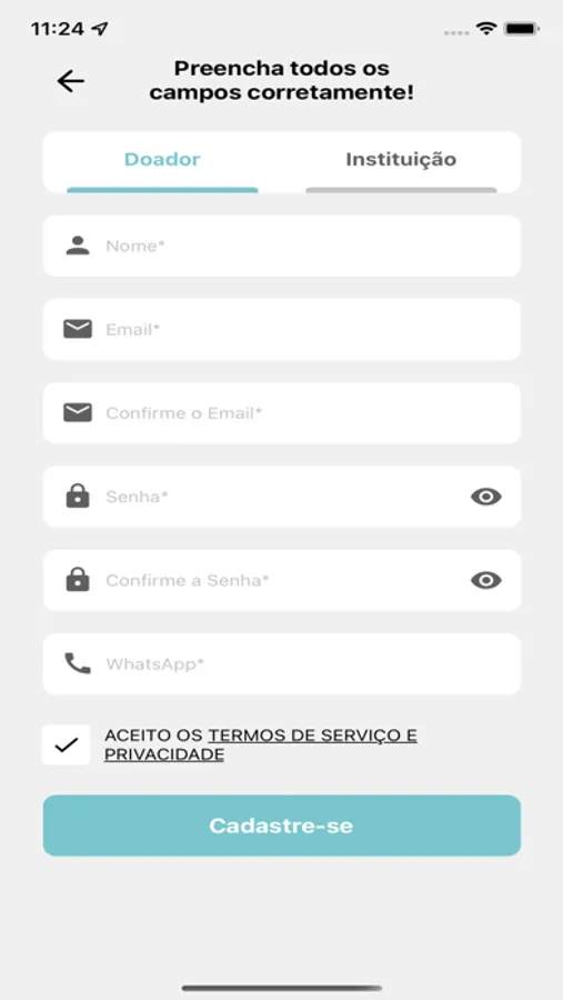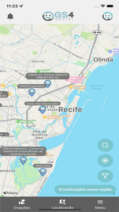 A busca pode ser feita pelos locais mais próximos dos usuários, por tipo de entidade ou área que deseja beneficiar.