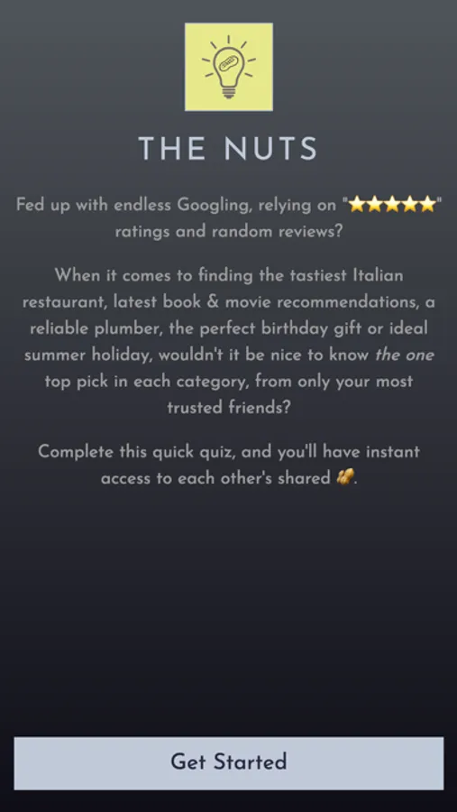 When it comes to finding the tastiest Italian restaurant, latest book & movie recommendations, a reliable plumber, the perfect birthday gift or ideal summer holiday, wouldn't it be nice to know the one top pick in each category, from only your most trusted friends?