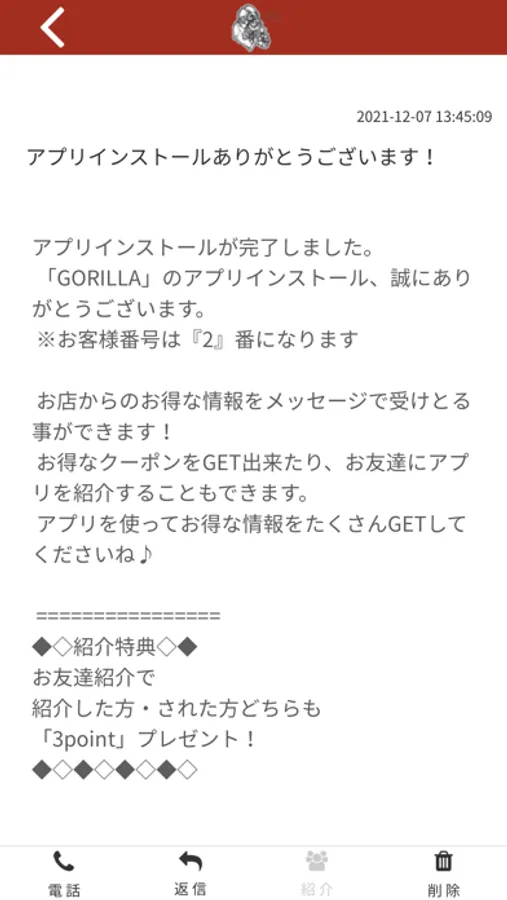 GORILLAのアプリをSNSを通じてお友達に紹介する事ができます。