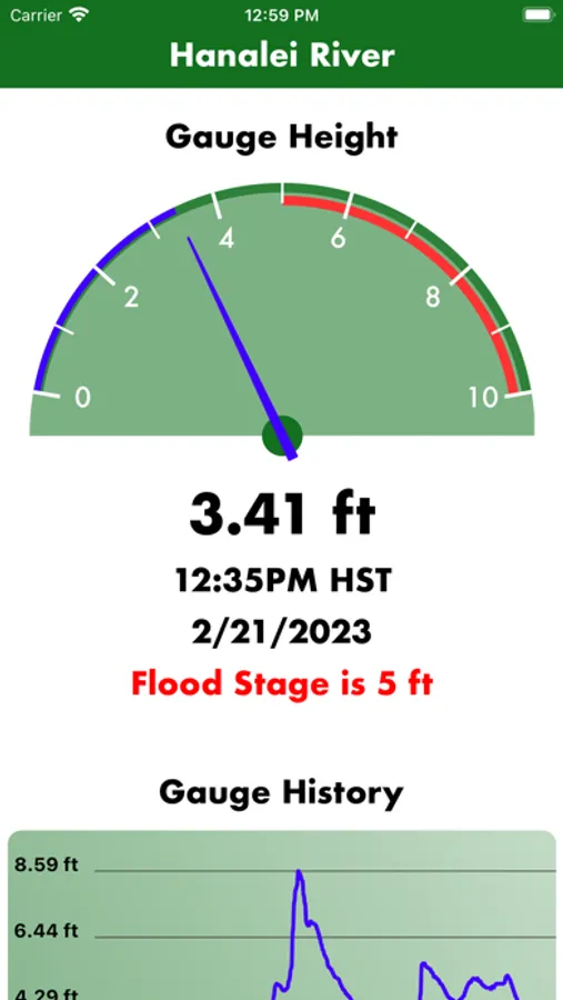 The Hanalei River app allows anyone to quickly check the USGS river gauge height during heavy rains on Kaua'i.