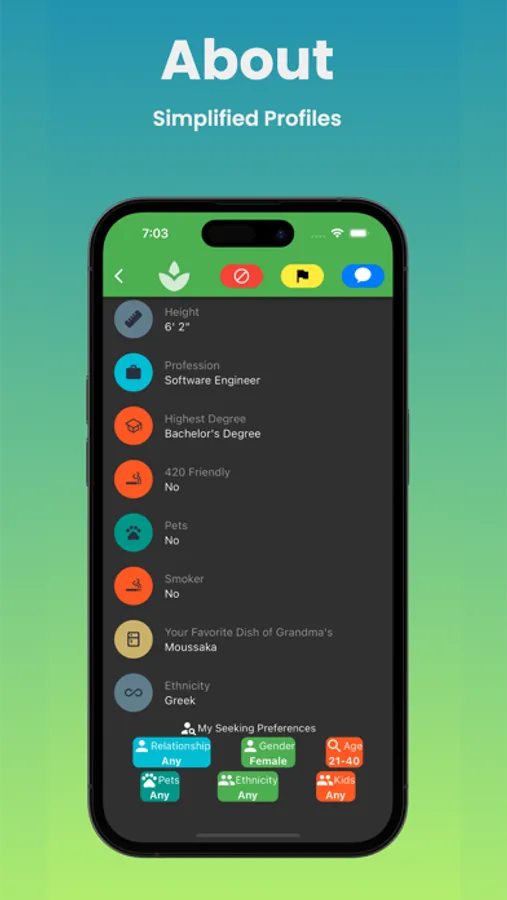 No more guesswork - access essential information on user profiles in one simple view. We highlight the details that matter most, enabling instant compatibility checks and conversation starters.