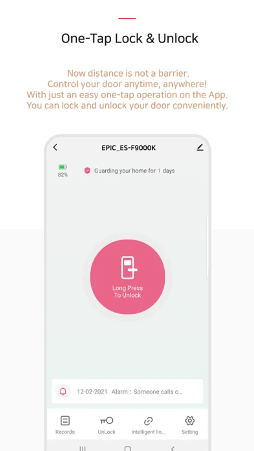 ● EPIC One-Tap Lock & Unlock- Now distance is not a barrier, control your door anytime, anywhere! With just an easy one-tap operation on the App, you can lock and unlock your door Conveniently