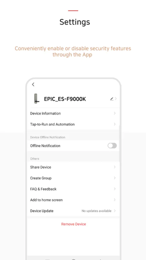 ● EPIC Settings: Conveniently enable or disable security features through the App