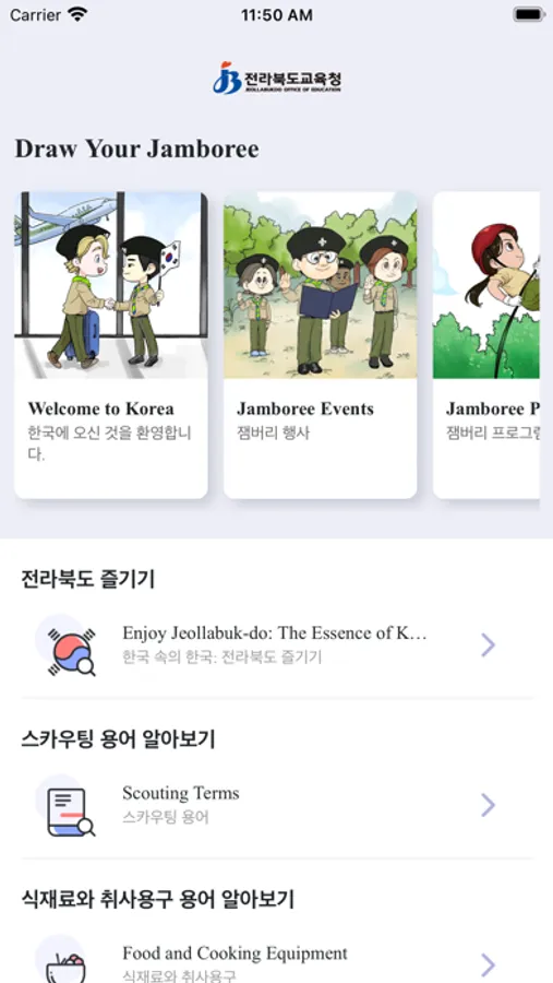 - 2020년 전북교육청 민주시민교육과에서 발행한 Draw Your Jamboree 영어자료집을 E-book 버전