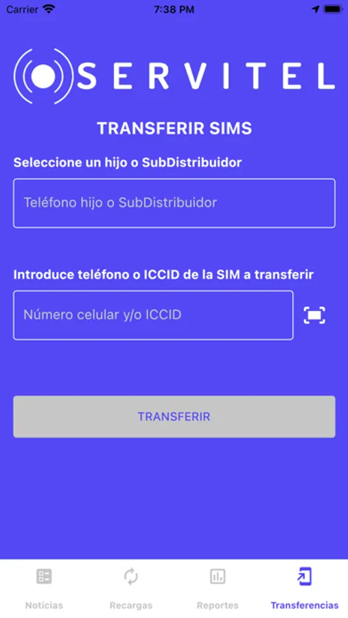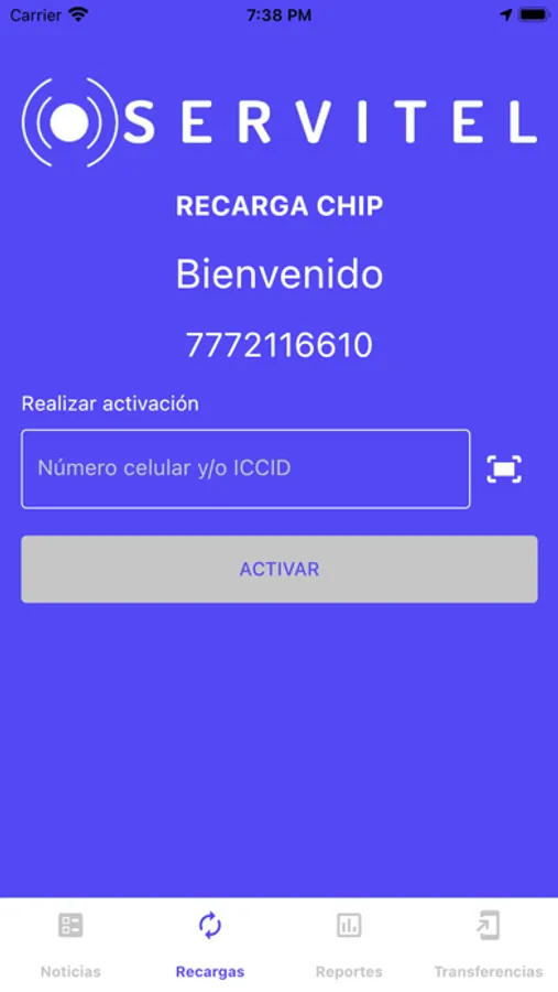 Aplicacion para activacion de Chips del distribuidor autorizado Telcel : Servitel