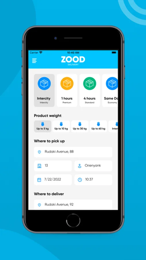 Преимущество нашего сервиса в том, что вы сами выбираете и указываете дату и время, куда и когда доставить заказ. В любое время можно получить информацию о статусе вашего заказа и о курьере, для этого вам необходимо зарегистрироваться в приложении ZOOD DELIVERY. Для того чтобы оформить заказ вам нужно выбрать тариф, указать время, место и имя получателя. Оплата осуществляется наличными или картой. Вы можете заранее узнать стоимость доставки.