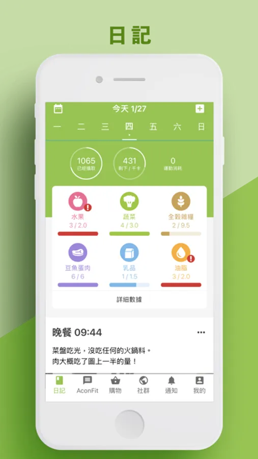 "AconFit-我的健康生活,提供用戶免費紀錄餐食與生活紀錄