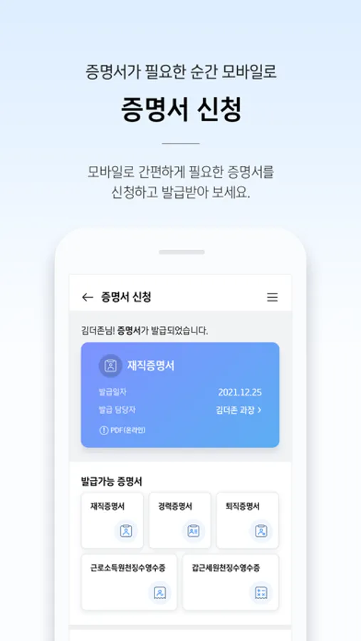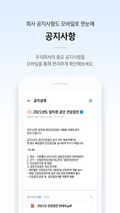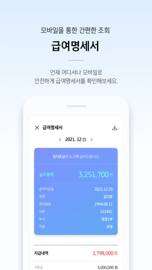 - 간편 인증 절차를 통한 급여정보 보안 기능 제공