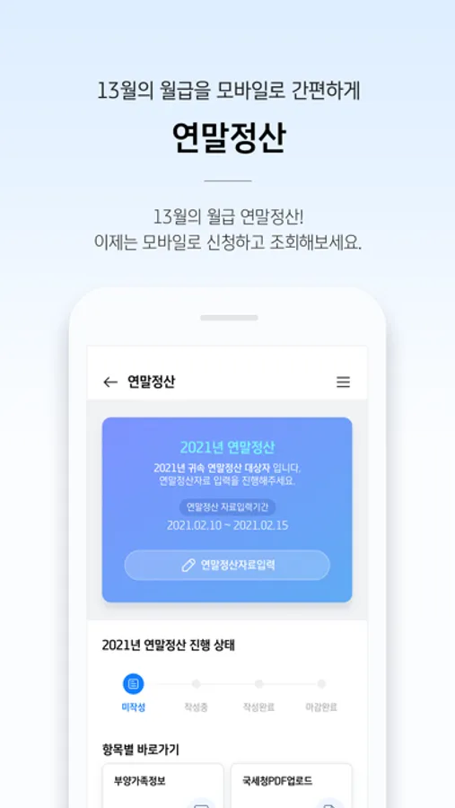- 연말정산 진행 상태 및 결과 조회 기능 제공