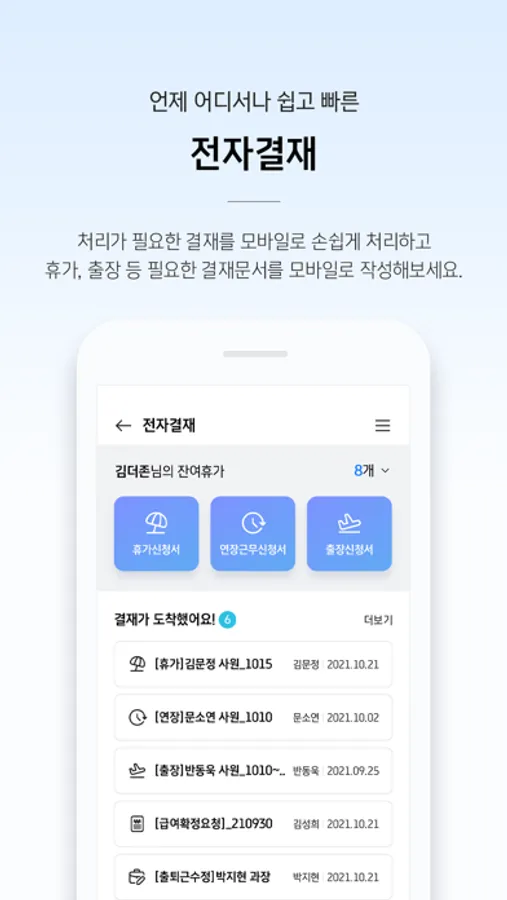 - 업무에 필요한 결재도 간편하게 승인 또는 반려 가능
