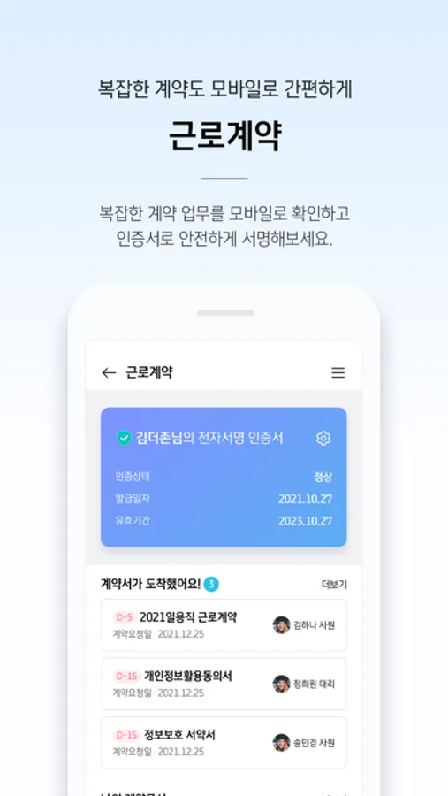 - 근로유형에 맞는 근로계약서 및 동의서 등 다양한 계약문서 체결 가능