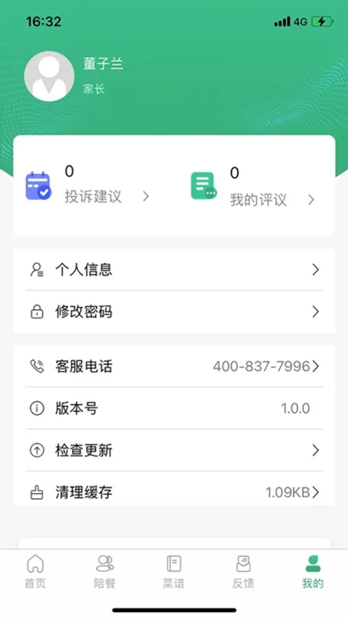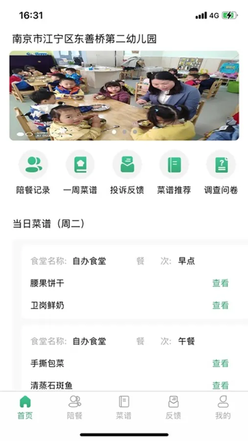 学生家长使用,可以查看、推荐菜谱,查看食品留样,投诉、意见反馈等。
